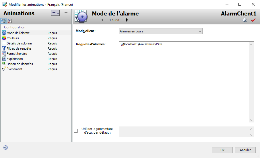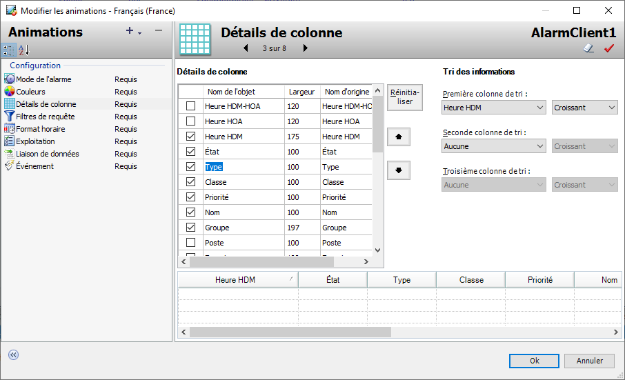 The configuration of the columns to display is based on the AlarmGateway configuration: