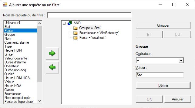 - On a remote session (RDS): "Node='localhost:' and Provider='AlmGateway' and Group='<Top area>'".