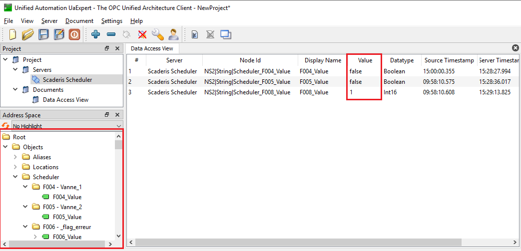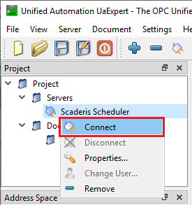 infoIf the connection to the internal OPC-UA server is made from a different computer than the one running the Scheduler Processor, then "localhost" must be replaced with the name of the computer running the Scheduler Processor.