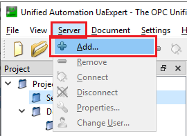 To test the connection to the internal OPC-UA server, we recommend using the UAExpert software, which is an OPC-UA client. It can be downloaded from the following address: https://www.unified-automation.com/products/development-tools/uaexpert.html