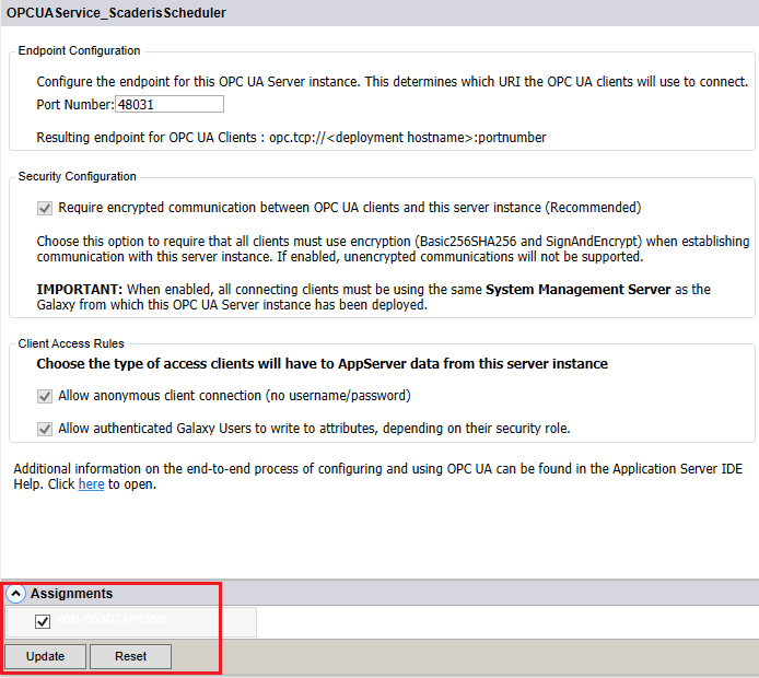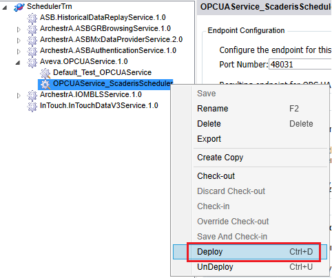 Deploy the Aveva System Platform OPC-UA service