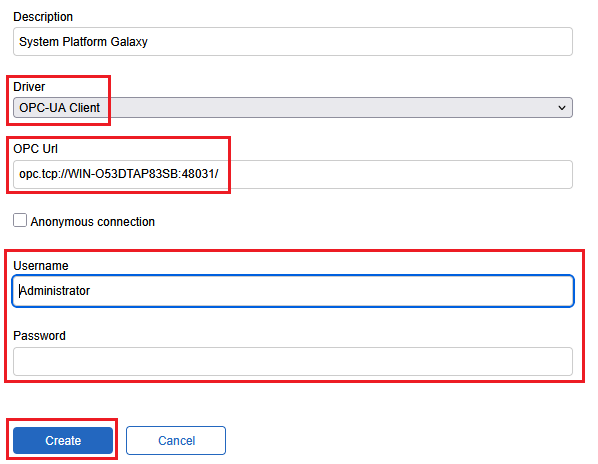 Create an OPC-UA Client Connection to the System Platform