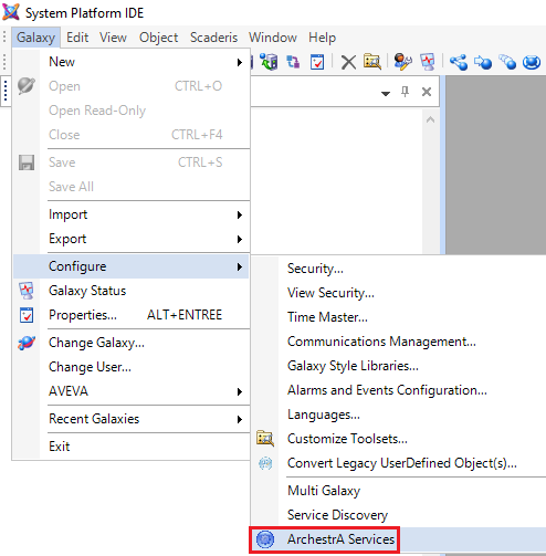 Go to the Galaxy menu > Configure > Archestra Services