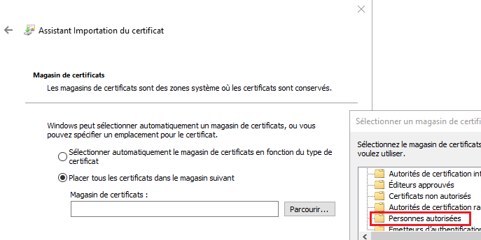 Select the option "Place all certificates in the following store"