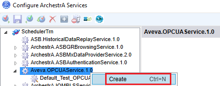 Navigate through the service tree and create a new OPC-UA service