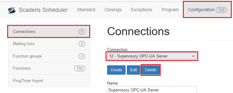 The connection "1 – Internal OPC-UA Server" cannot be deleted.