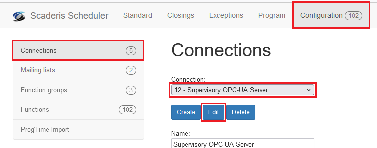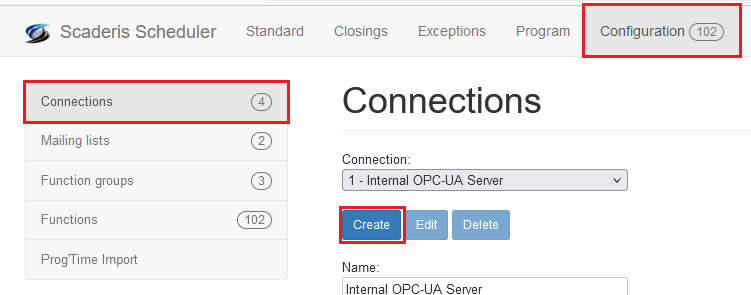 An OPC-UA client connection allows Scaderis Scheduler to connect to a third-party application via its OPC-UA server.