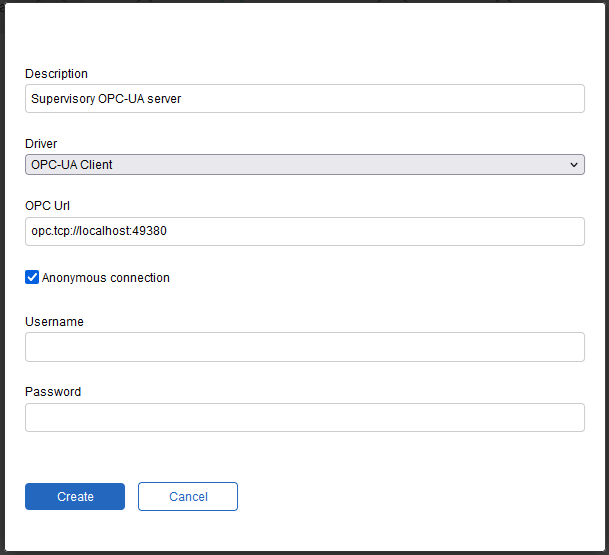 In the "Driver" field, select "OPC-UA Client"