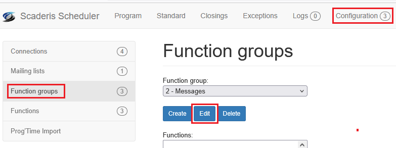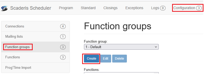 Click on the "Configuration" menu, then on the "Function groups" submenu