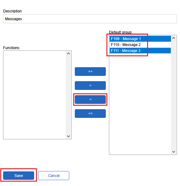 In the "Function group" field, select the function group to modify, then click the "Edit" button