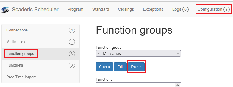 In the "Function group" field, select the function group to delete, then click the "Delete" button