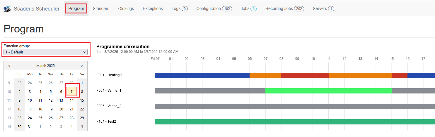 The program view allows you to get a consolidated view of the programs by function group for a specific day.
